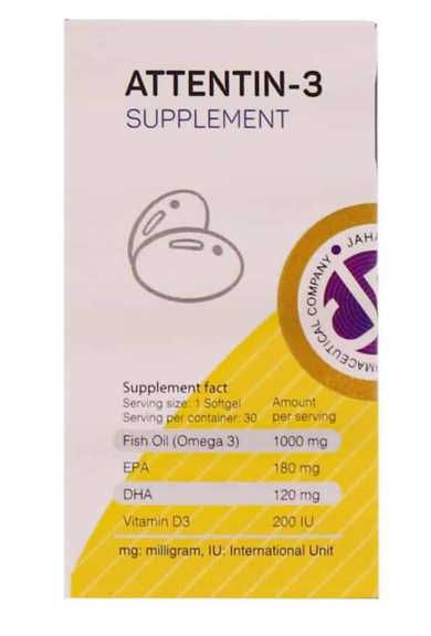 اتنتین 3 (امگا3 و ویتامین دی) جهان فارمد آریا 30 عدد | Jahan pharmed Aria Attentin 3